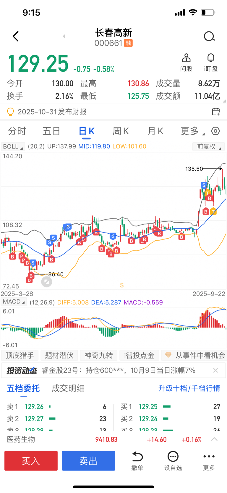 $长春高新(SZ000661)$ 480元山顶入的,现在解套盈利了