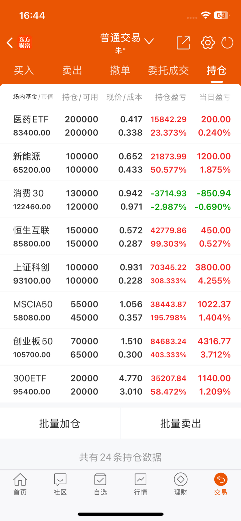 本周-16k,账户净值1.243。最近跑输指数一大堆。