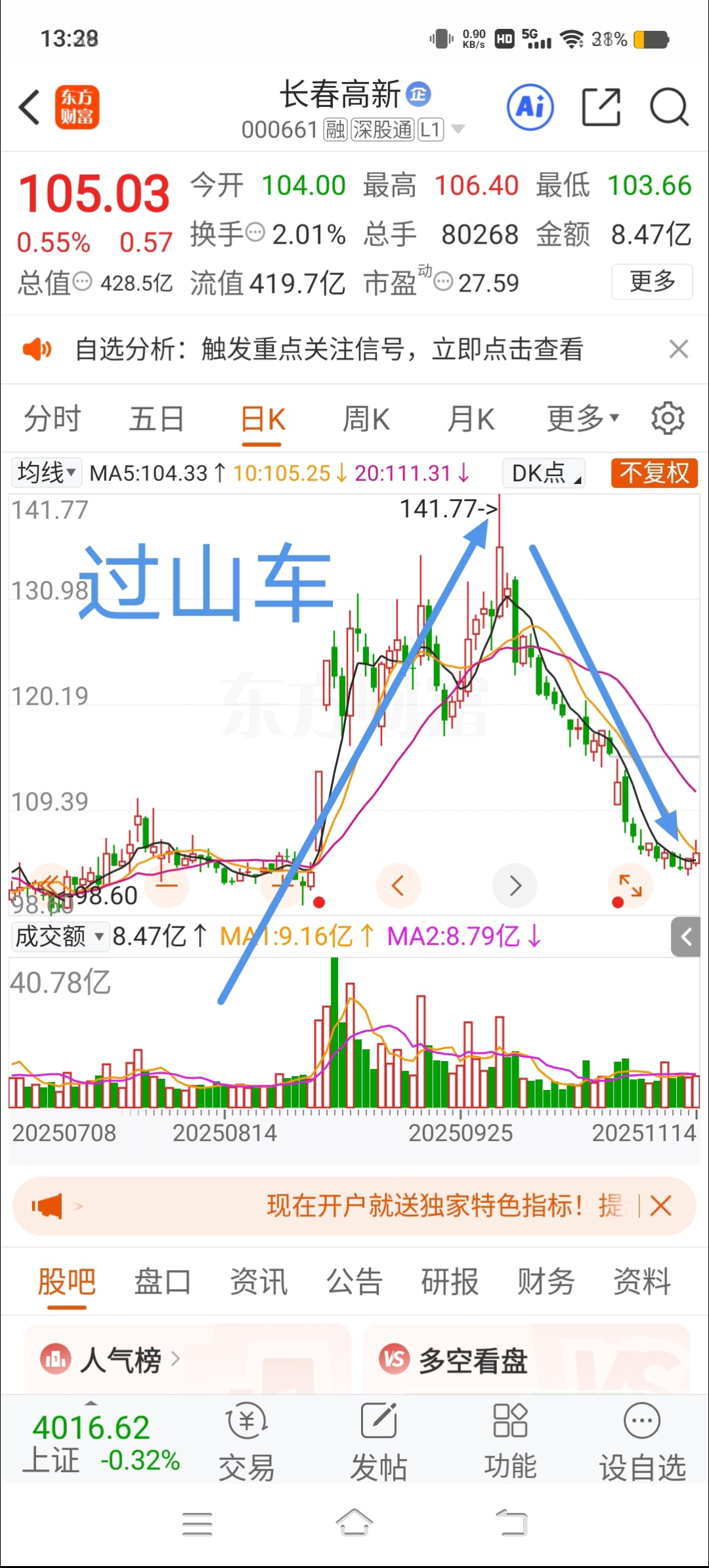 $长春高新(SZ000661)$ 今天玩过山车,爽。