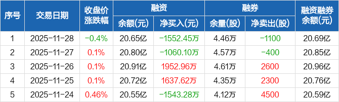 长春高新:融资净偿还1552.45万元,融资余额20.65亿元(11-28)