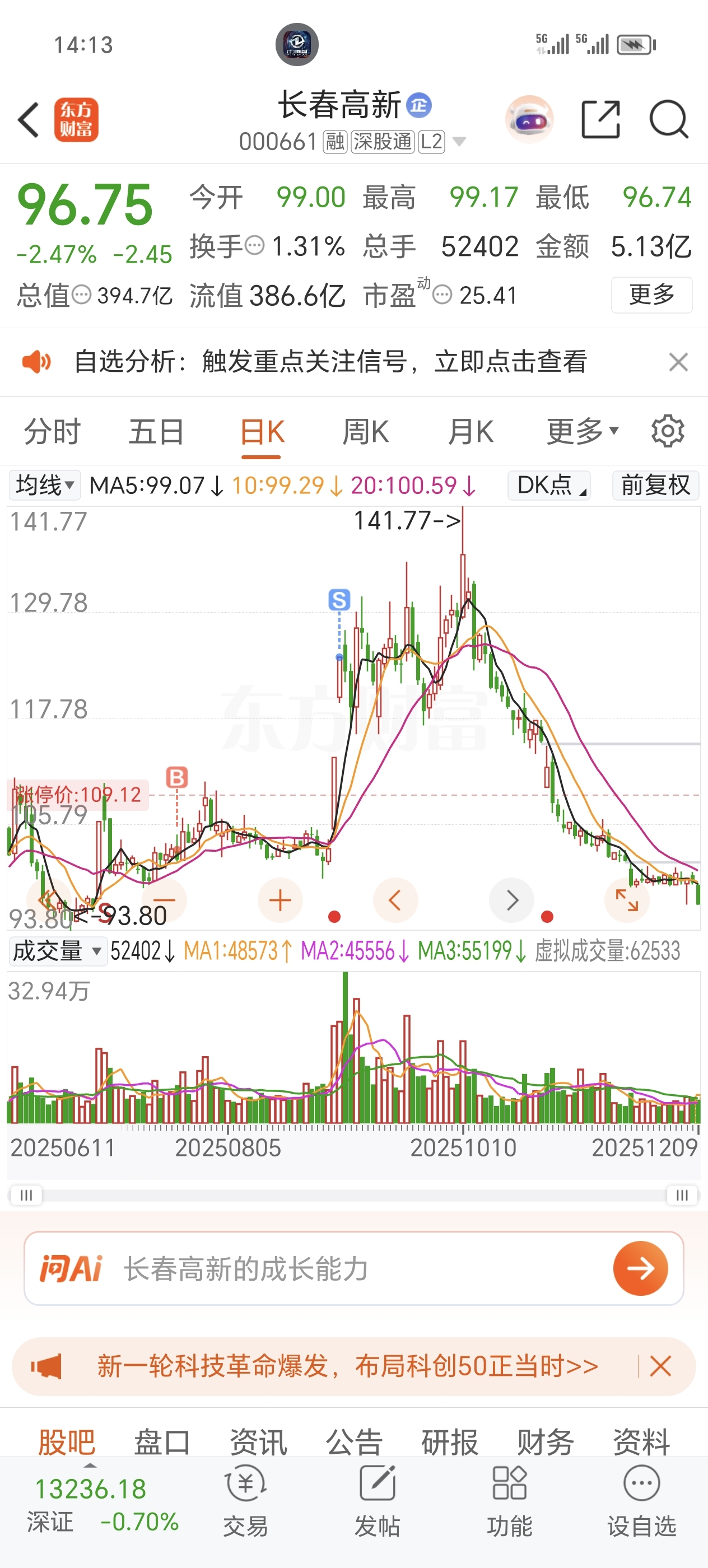 $长春高新(SZ000661)$ 走势有点吓人啊