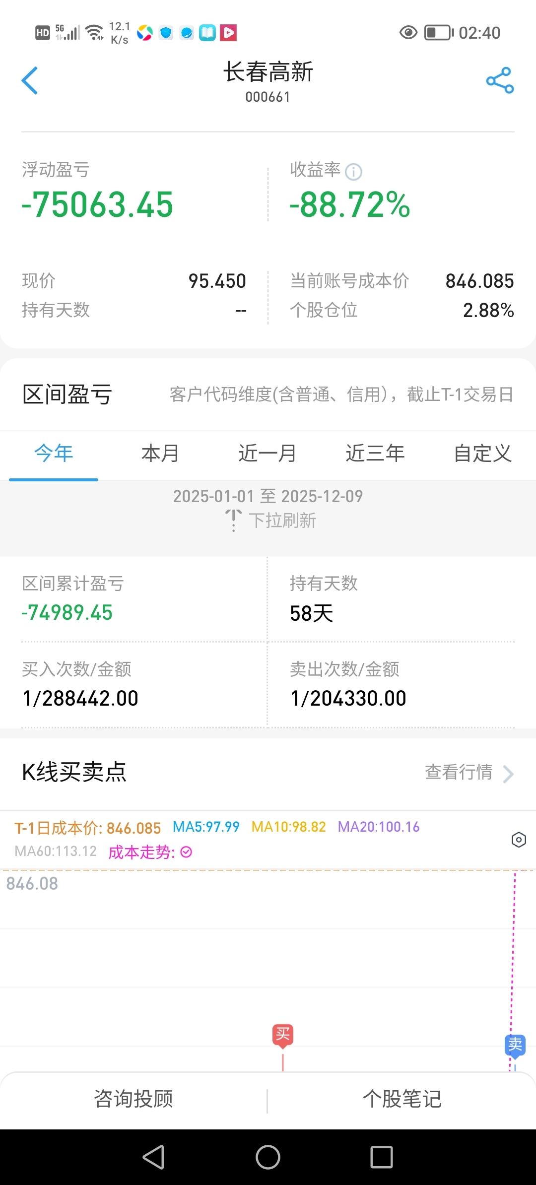 这个票买入前有跳空高开拉两个涨停板,我也看好在130元附近买了两千两百股,第二天就下跌五个多点,以前买股票止损在买入下跌三个点无条件止损,这次因看好长春高新投入研发十七个亿,下跌超三个点没止损,结果无止境下跌,前两天97.63害肉走人!亏了七万五千元左右,所以以后在好公司买入下跌超三个点无条件要止损!炒股票十八年这个票是最大一次败笔!就当买个教训吧!记住买入下跌三个点无条件止损!上涨不言顶,下跌不言底!