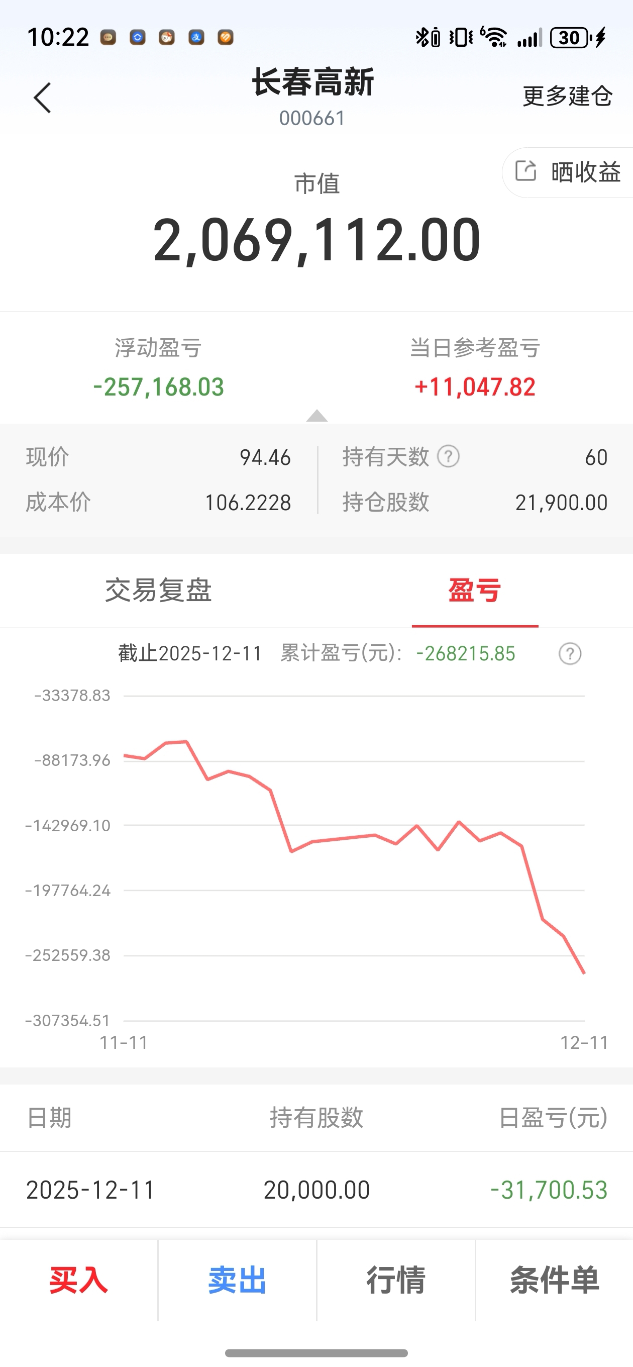 $长春高新(SZ000661)$ 满仓哭晕在厕所的第60天