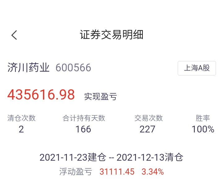 给你们看看当时济川药业的战绩,但是还是预估不足,走的太早了!这仅是一个户头的。
