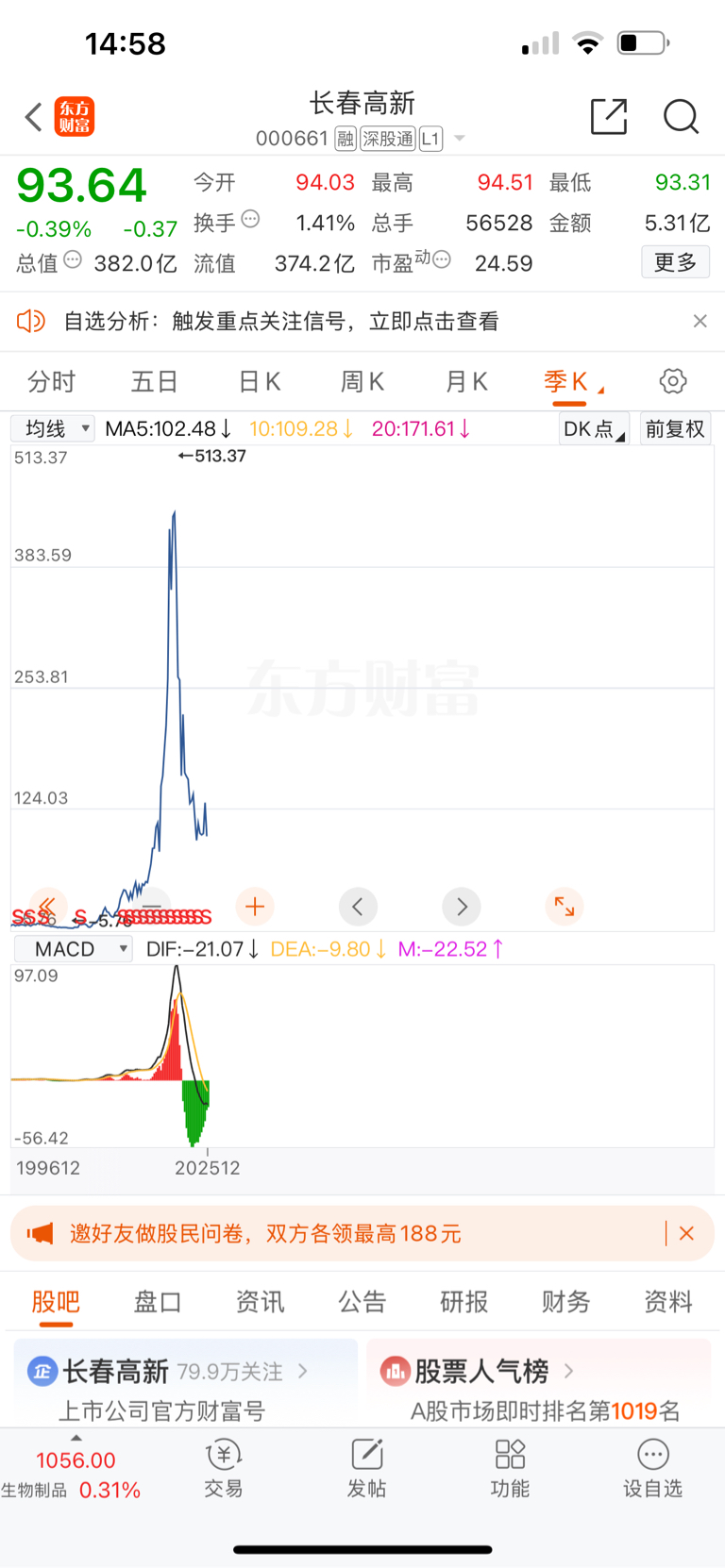 $长春高新(SZ000661)$ 下周必到88,立贴为证!