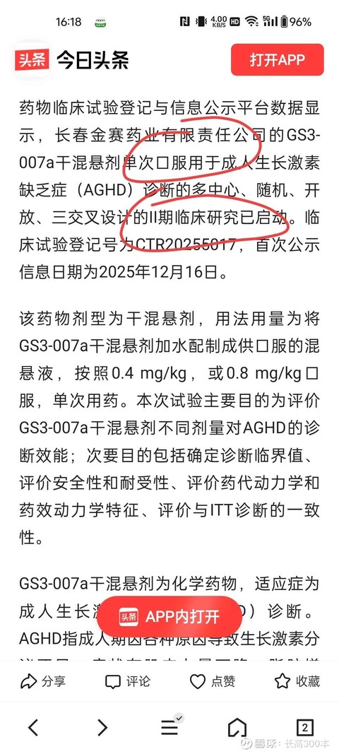 成人口服生长激素打开现象空间。已经开始II临床试验了。