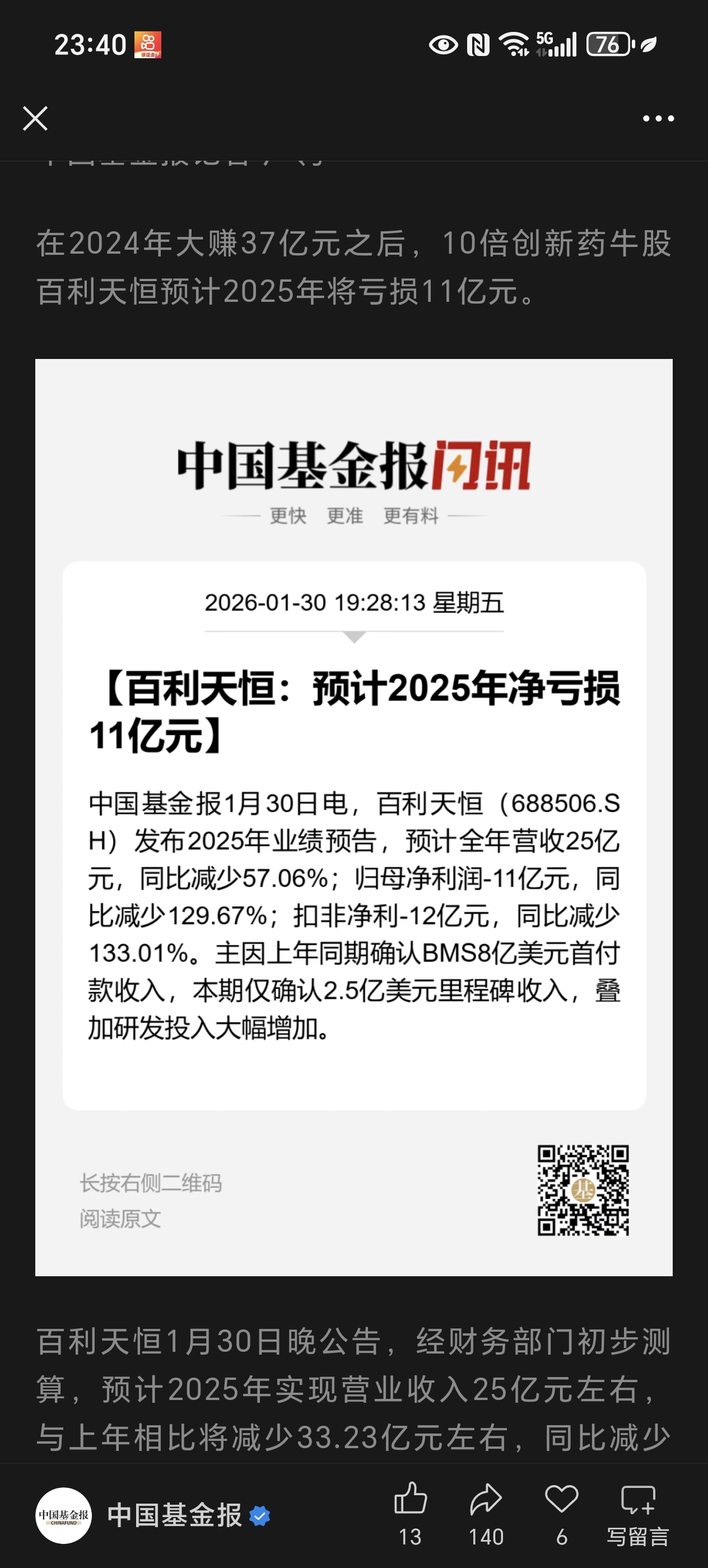 看看10倍创新药牛股百利天恒亏损2025年亏损11亿,市值1146亿,市净率15