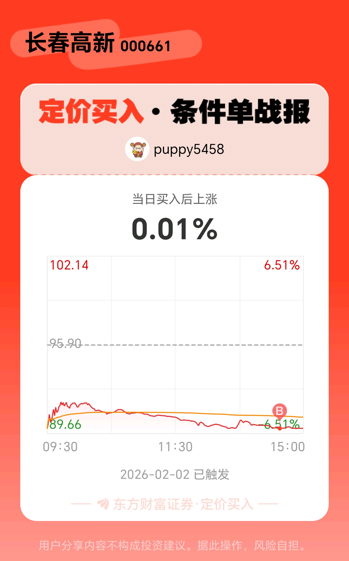 #条件单交流# #定价买入晒单# 我方派出一个定价买入条件单,立时就征服了$长春高新(SZ000661)$