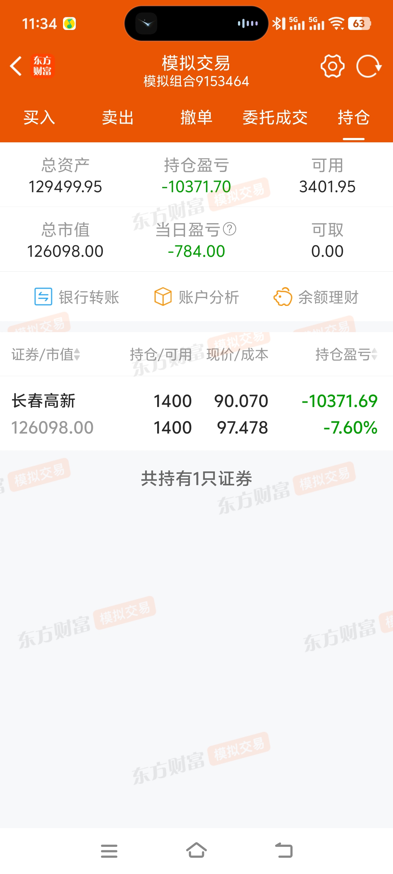 $长春高新(SZ000661)$ 之前实盘在这里亏了2w,现在模拟盘杀进来又给我套了,本色不改