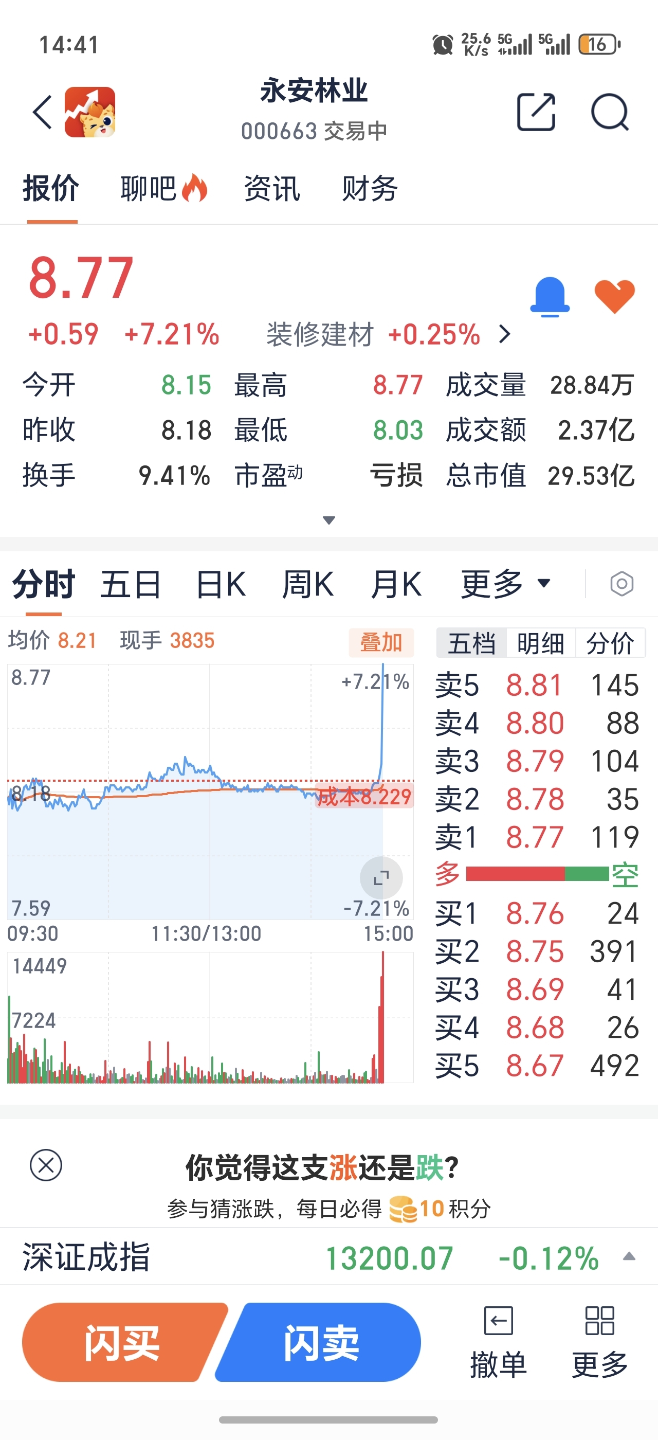 $永安林业(SZ000663)$ 一个点的时候抄底了