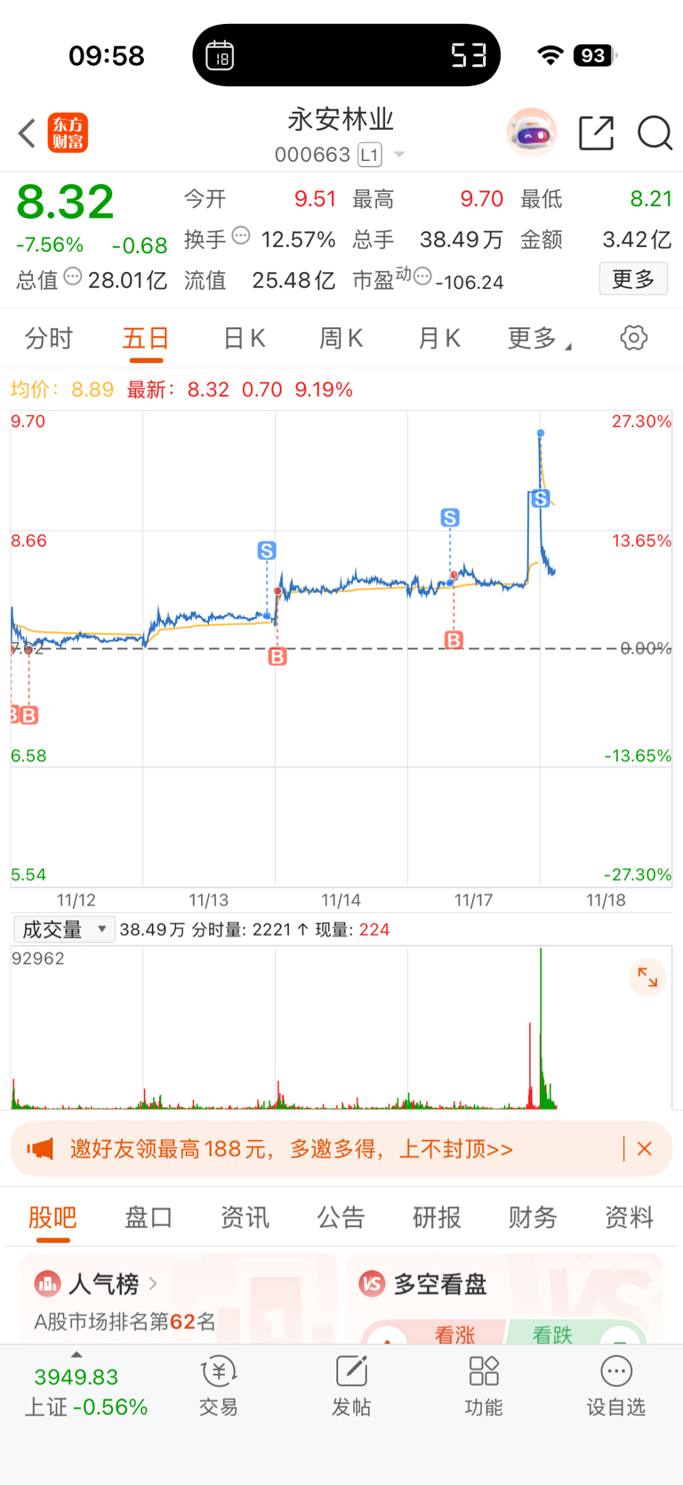 $永安林业(SZ000663)$ 地天我也不来了谢谢主力你们辛苦了