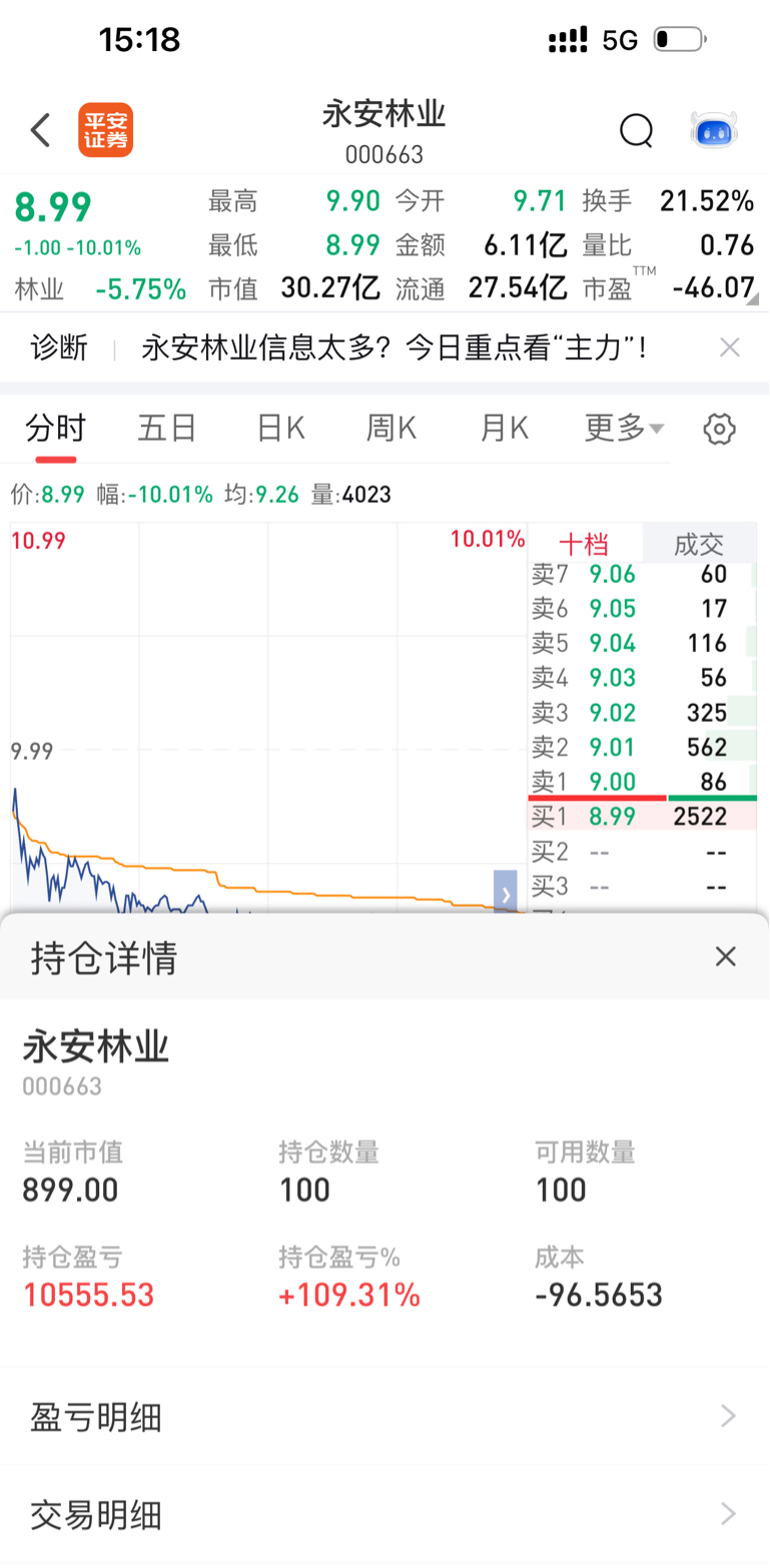 $永安林业(SZ000663)$ 今天难受啊,吃了一个跌停,100块钱没了