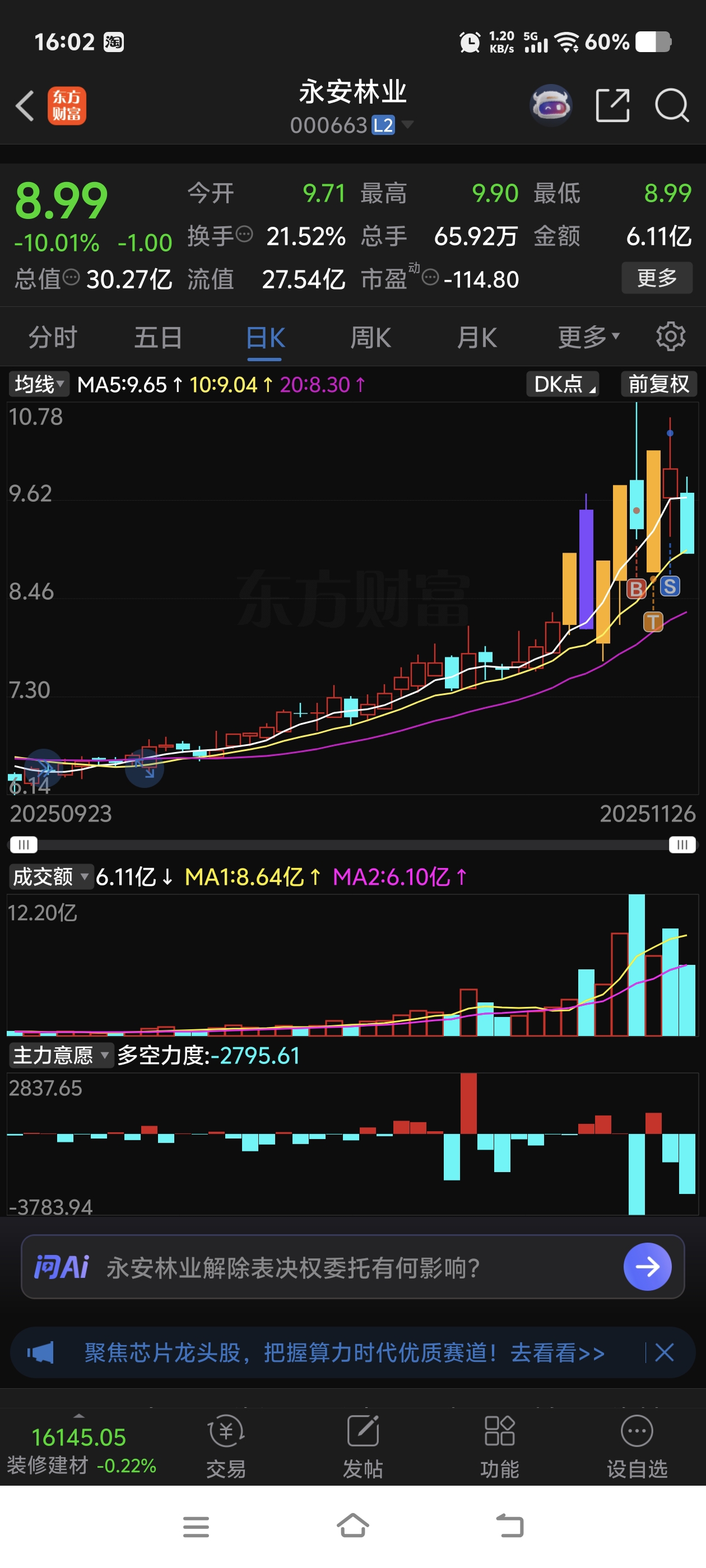 $永安林业(SZ000663)$ 不敢留恋你多一天