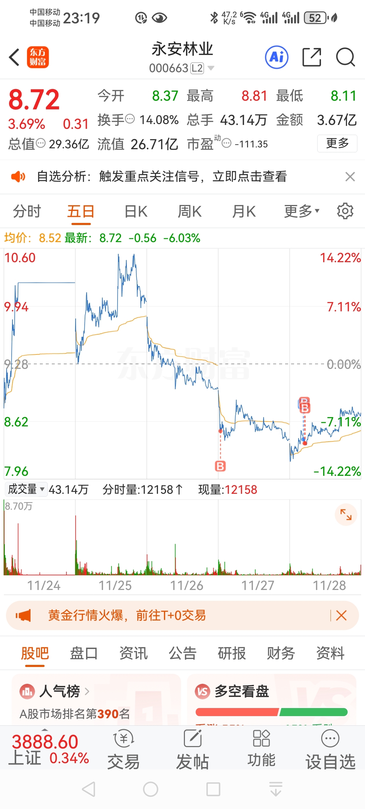 $永安林业(SZ000663)$ 观察了两天就买了两支票,另外一支反包了红了一个多点出了我玩短线又不是那些股神,下周一我看涨不服来喷