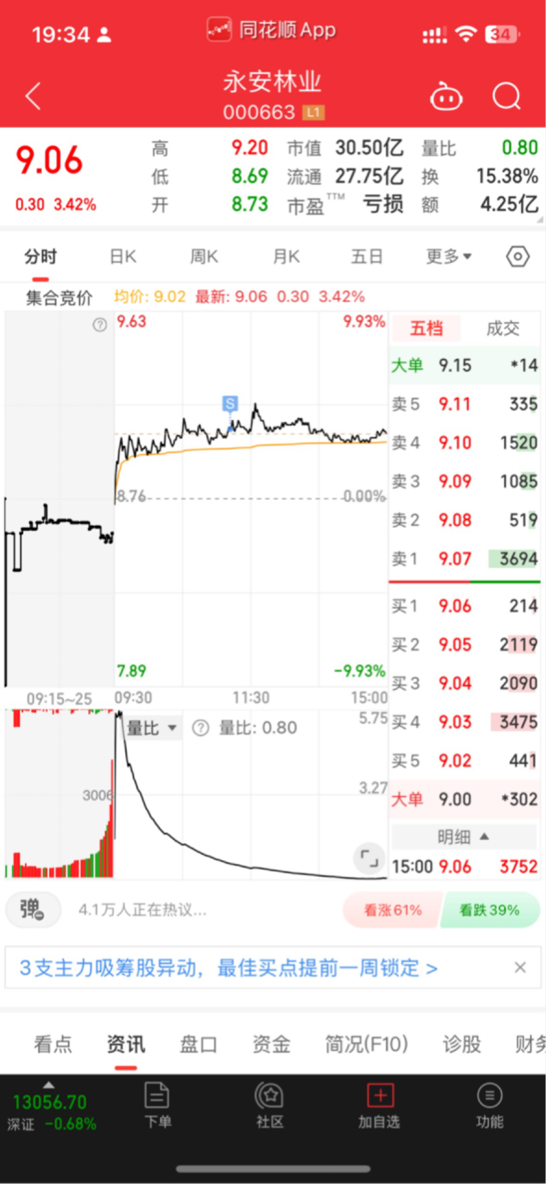 $永安林业(SZ000663)$ 今天全部卖了明天利空跌停我会进来