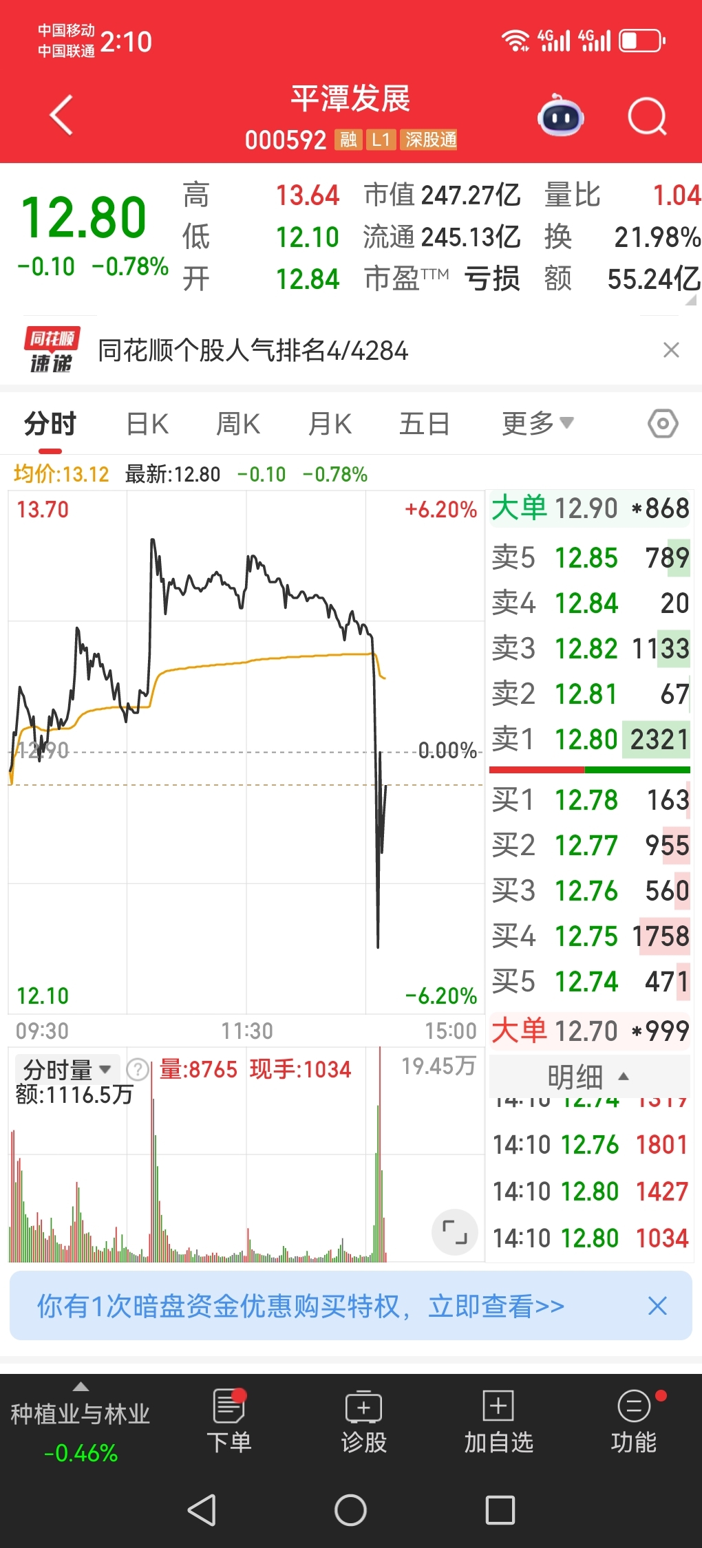 $永安林业(SZ000663)$ 平潭跳水了