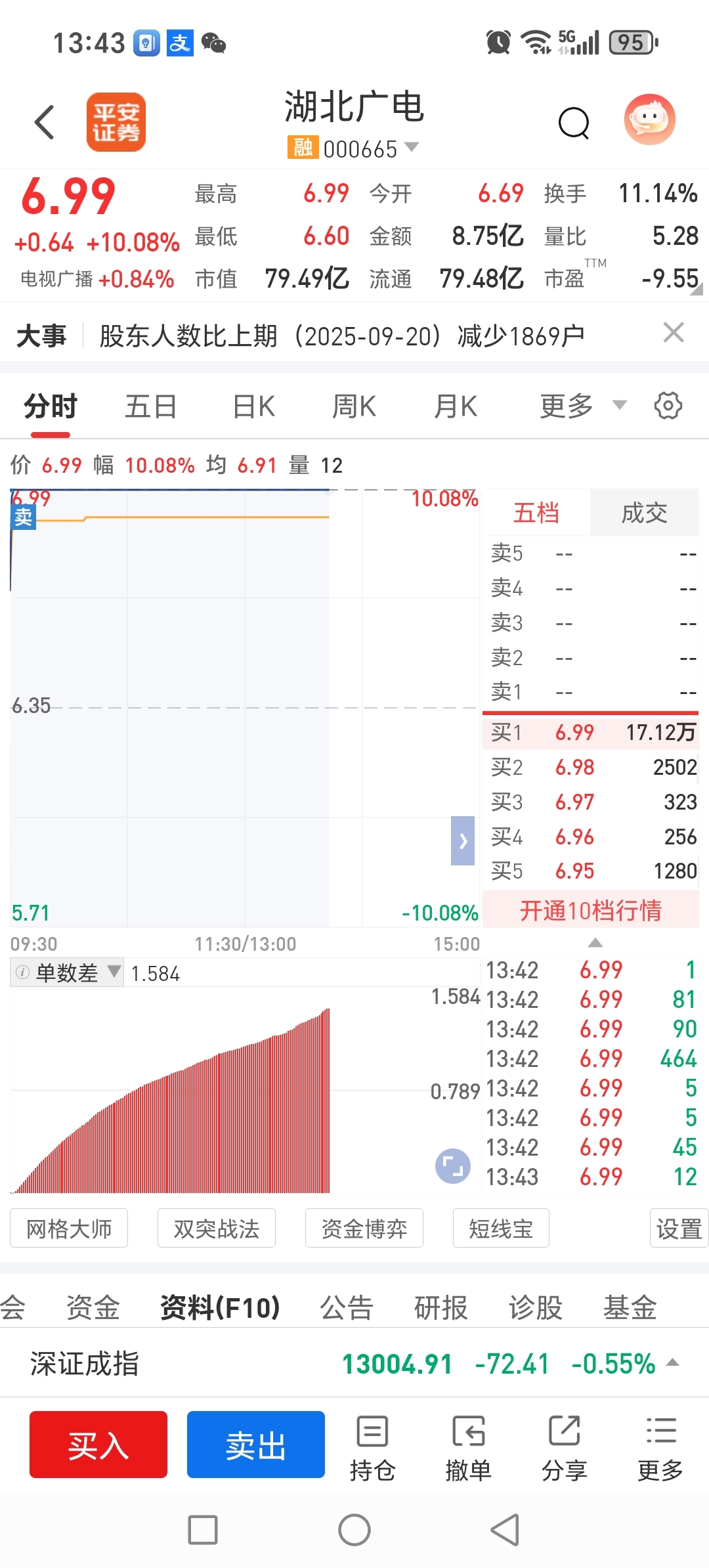 $湖北广电(SZ000665)$ 卖了不知道明天还板板不