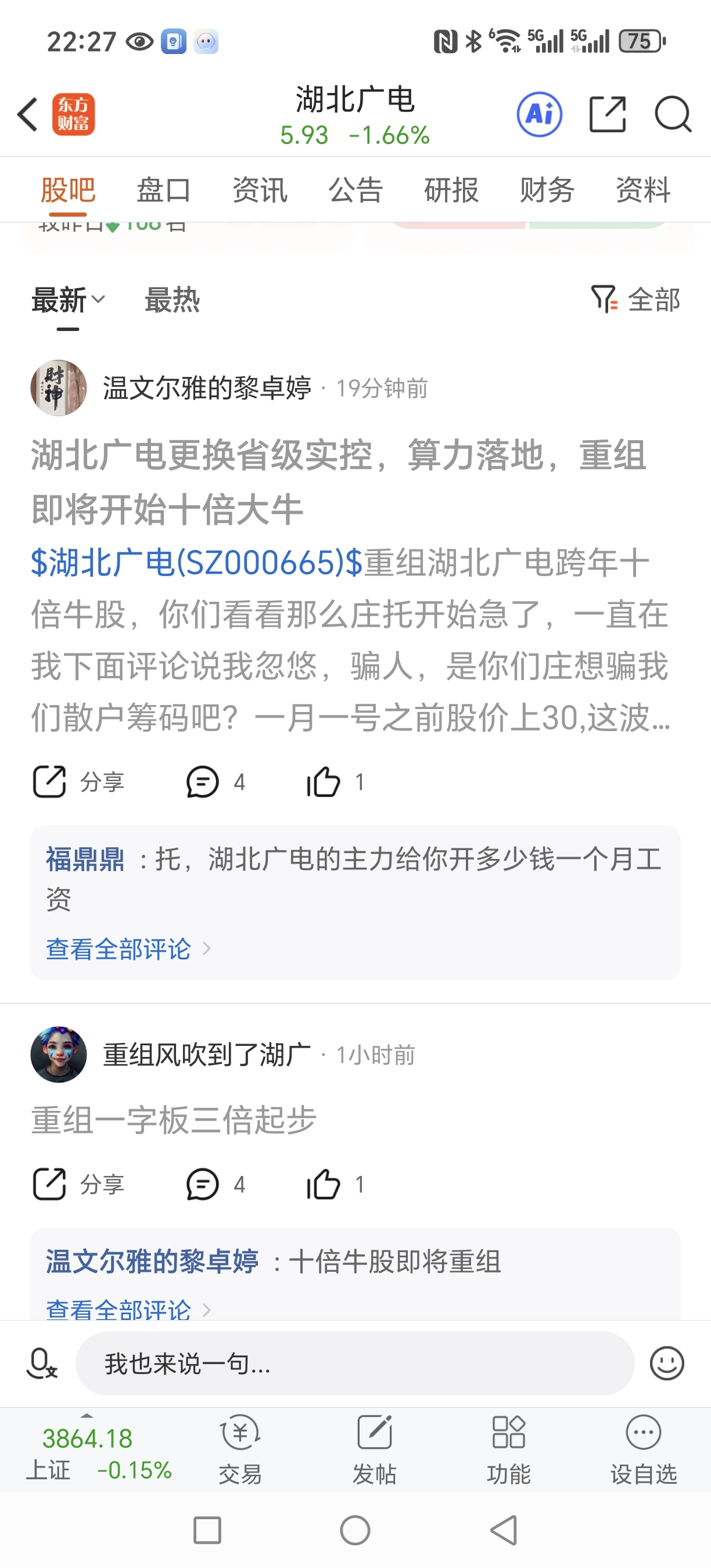 $湖北广电(SZ000665)$ 这两垃圾是托,一唱一和,大家记住他们,反着来就对了