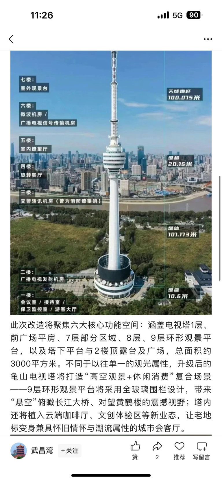 定了!武汉龟山电视塔即将回归!3000㎡全新空间解锁高空休闲新玩法