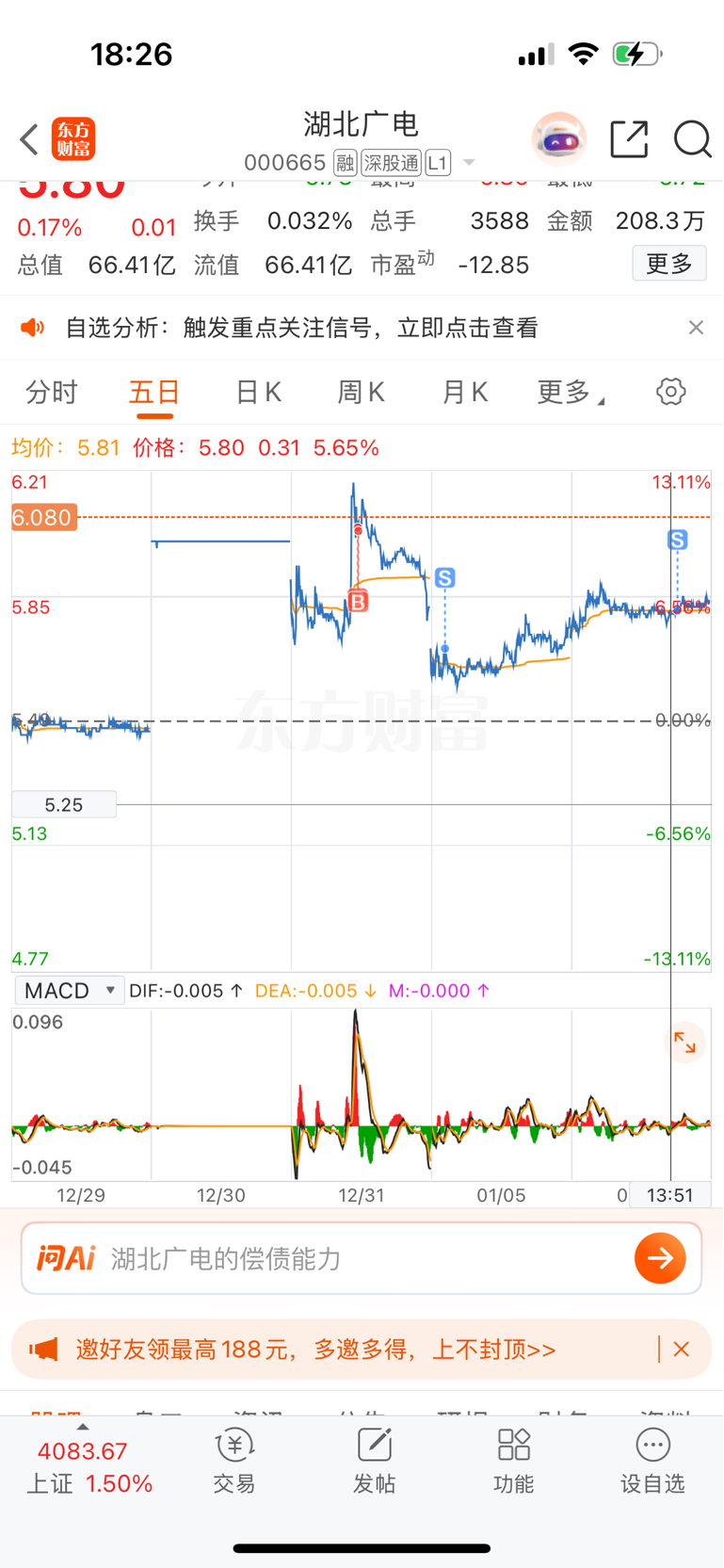 $湖北广电(SZ000665)$ 盘中卖出4000股 亏大了