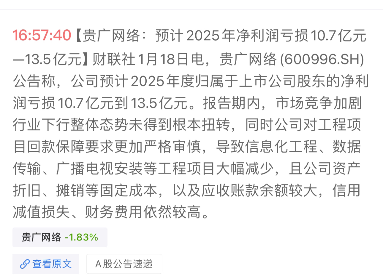 明天开盘继续下杀贵广和湖北广电一样都是亏损湖北亏的更多