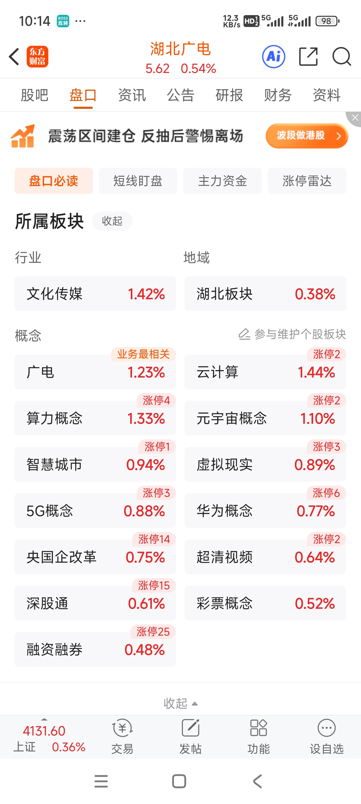 $湖北广电(SZ000665)$ 板块强势不跟,明后天回调就埋人