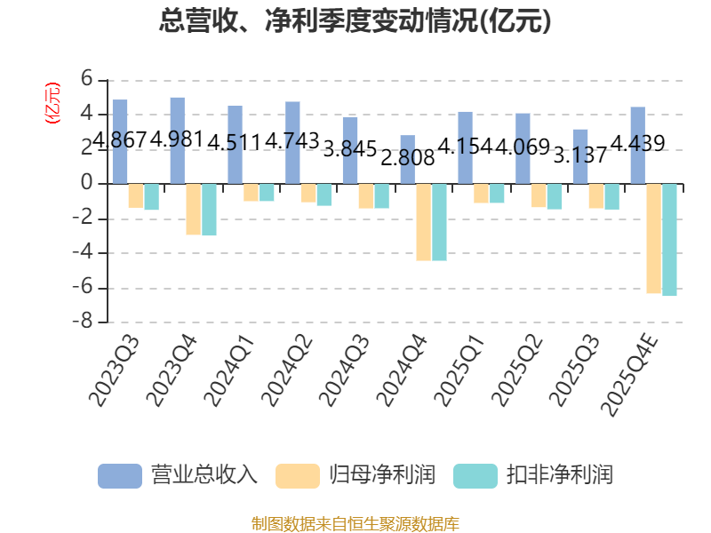 中证智能财讯湖北广电(000665)1月23日晚间披露2025年度业绩预告,预计2025年实现营业收入14.8亿元至16.8亿元;归母净利润亏损8.97亿元至11.47亿元,上年同期亏损7.95亿元;扣非净利润亏损9.3亿元至11.8亿元,上年同期亏损8.13亿元;基本每股收益-0.79元/股至-1.01元/股。以最新收盘价计算,市净率(LF)约1.62倍,市销率(TTM)约4.12倍。