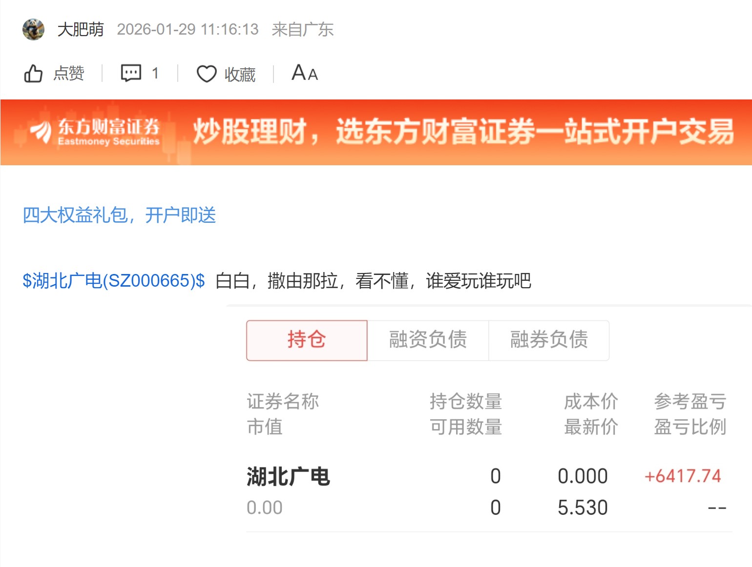 郑重声明:用户在财富号/股吧/博客等社区发表的所有信息(包括但不限于文字、视频、音频、数据及图表)仅代表个人观点,与本网站立场无关,不对您构成任何投资建议,据此操作风险自担。请勿相信代客理财、免费荐股和炒股培训等宣传内容,远离非法证券活动。请勿添加发言用户的手机号码、公众号、微博、微信及QQ等信息,谨防上当受骗!