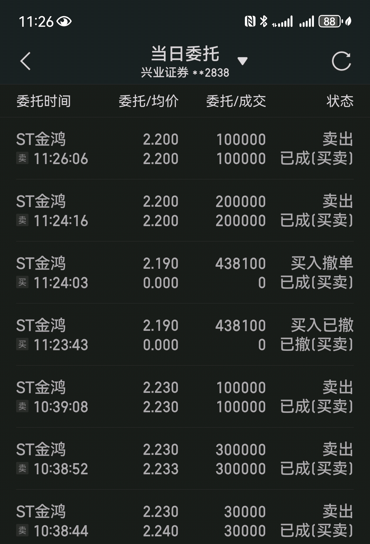 $ST金鸿(SZ000669)$ ST王者归来,满足你,给你看看,今天这个三百多万仓位全部砸出来给你。希望遵守承诺不要发言了