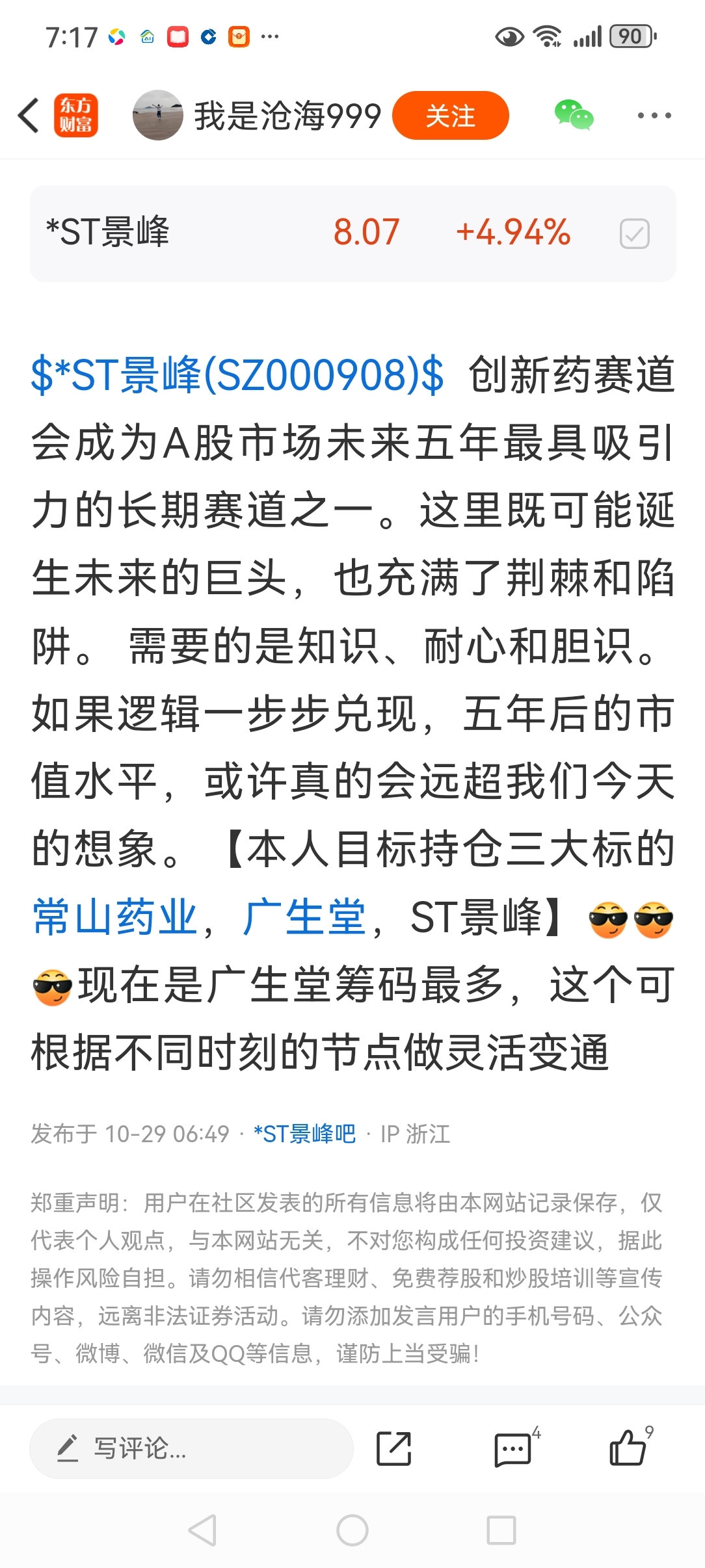 温馨提示: 1.根据《证券法》规定,禁止编造、传播虚假信息或者误导性信息,扰乱证券市场;2.用户在本社区发表的所有资料、言论等仅代表个人观点,与本网站立场无关,不对您构成任何投资建议。用户应基于自己的独立判断,自行决定证券投资并承担相应风险。《东方财富社区管理规定》