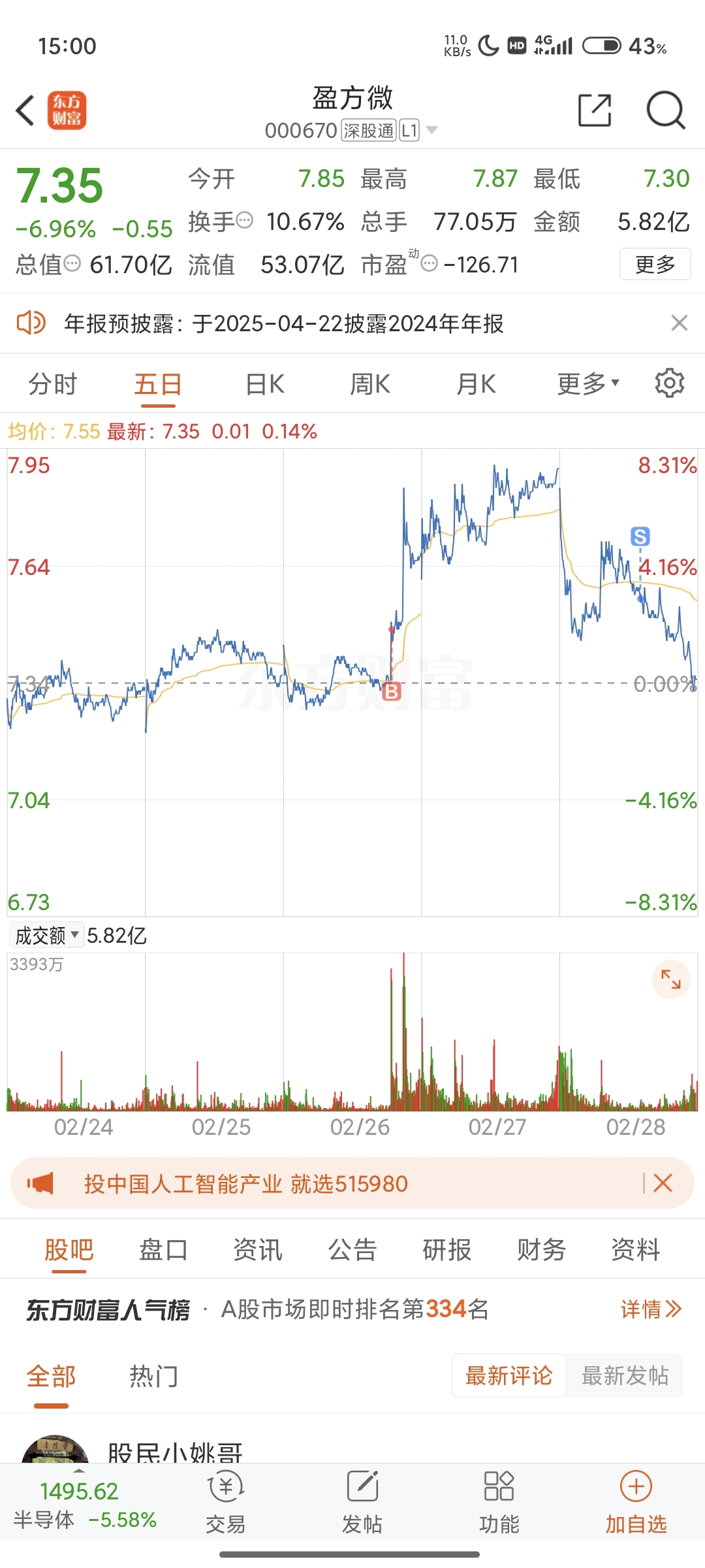 温馨提示: 1.根据《证券法》规定,禁止编造、传播虚假信息或者误导性信息,扰乱证券市场;2.用户在本社区发表的所有资料、言论等仅代表个人观点,与本网站立场无关,不对您构成任何投资建议。用户应基于自己的独立判断,自行决定证券投资并承担相应风险。《东方财富社区管理规定》