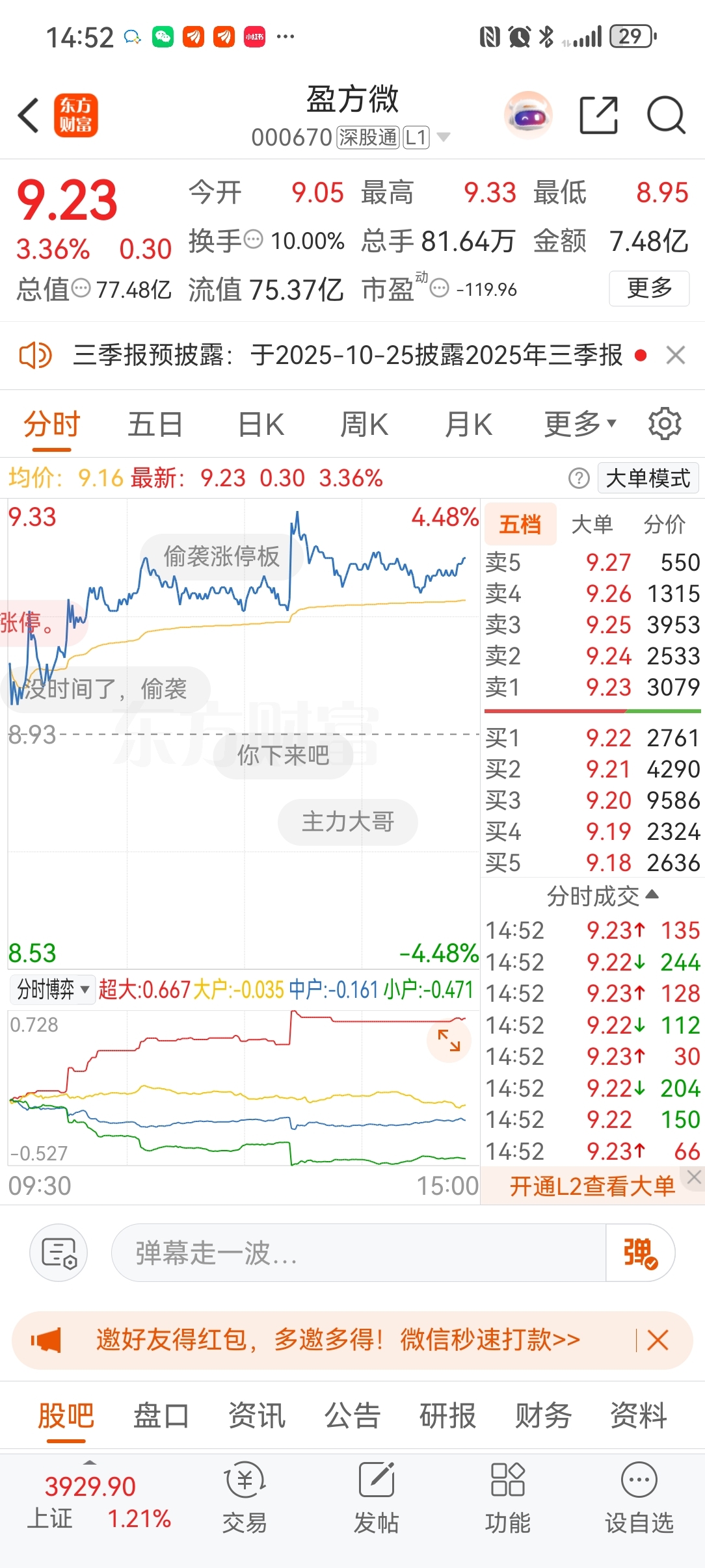 $盈方微(SZ000670)$ #炒股日记# 明天涨停