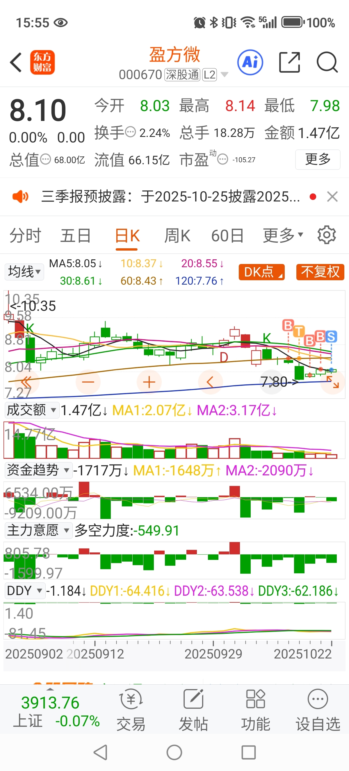 $盈方微(SZ000670)$ 半死不活,尾盘卖出,耐心等机会