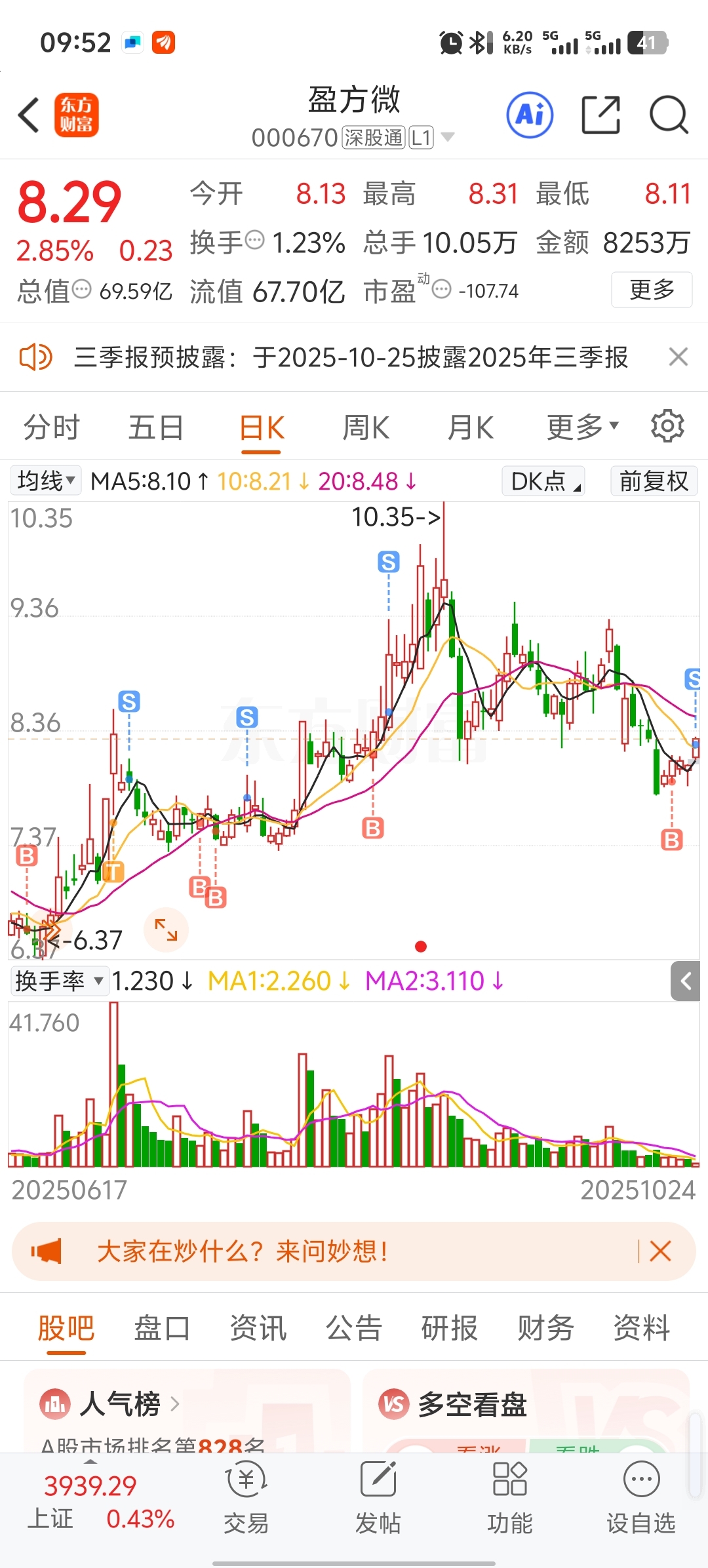$盈方微(SZ000670)$ 感谢小芳 留下发财