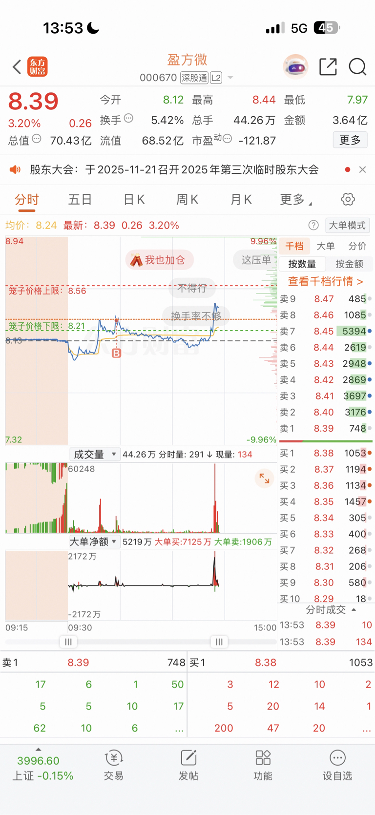 $盈方微(SZ000670)$ 刚想加仓大港的,可惜我在干农活