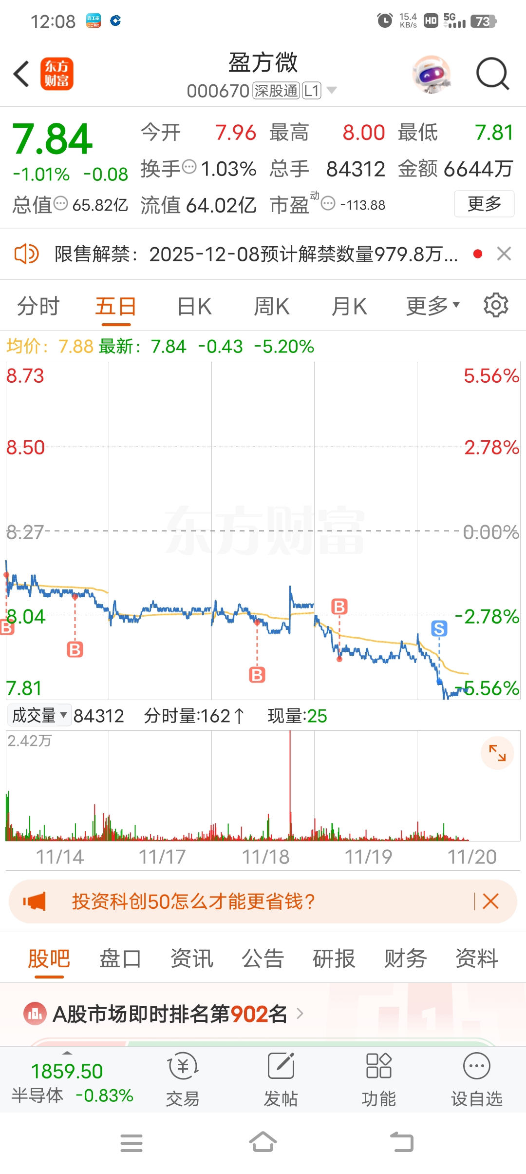 $盈方微(SZ000670)$ 走了,唉本来都是想挣点零花钱,昨天看到水下4点多的,一个龙头没买,就是今天开盘跑也有20个点,今天看京能水下还是没买,想等你回来,都没眼泪,这票和众泰一个吊样,只有最底点买。