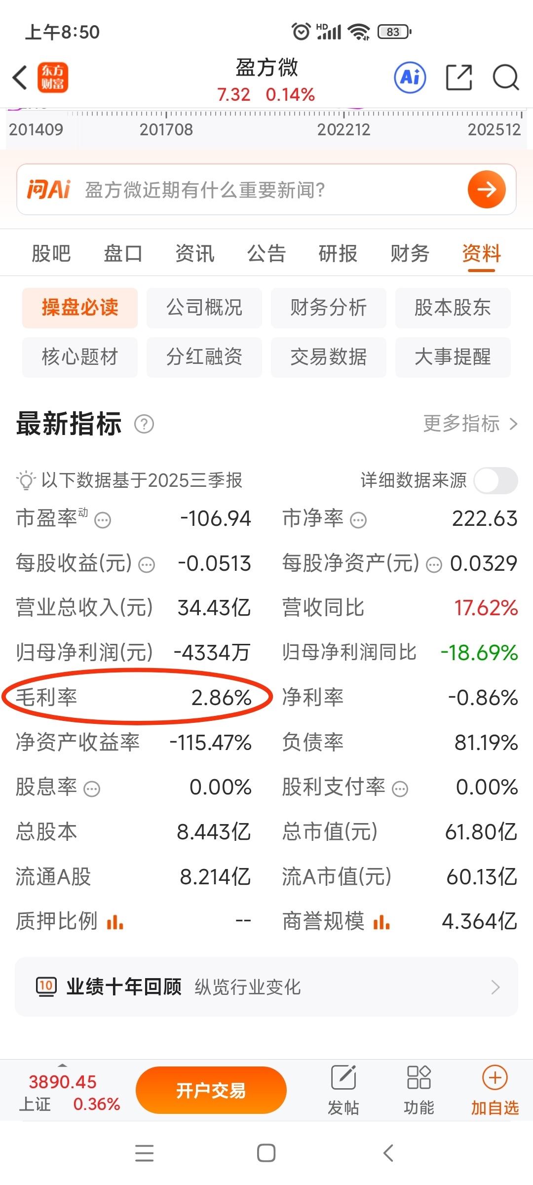 $盈方微(SZ000670)$ 半导体芯片概念题材高大上,实际上是电子元器件分销,毛利率只有2.86%,每股净资产只有0.0033元,还搞内幕交易,值得大家争抢筹码吗?