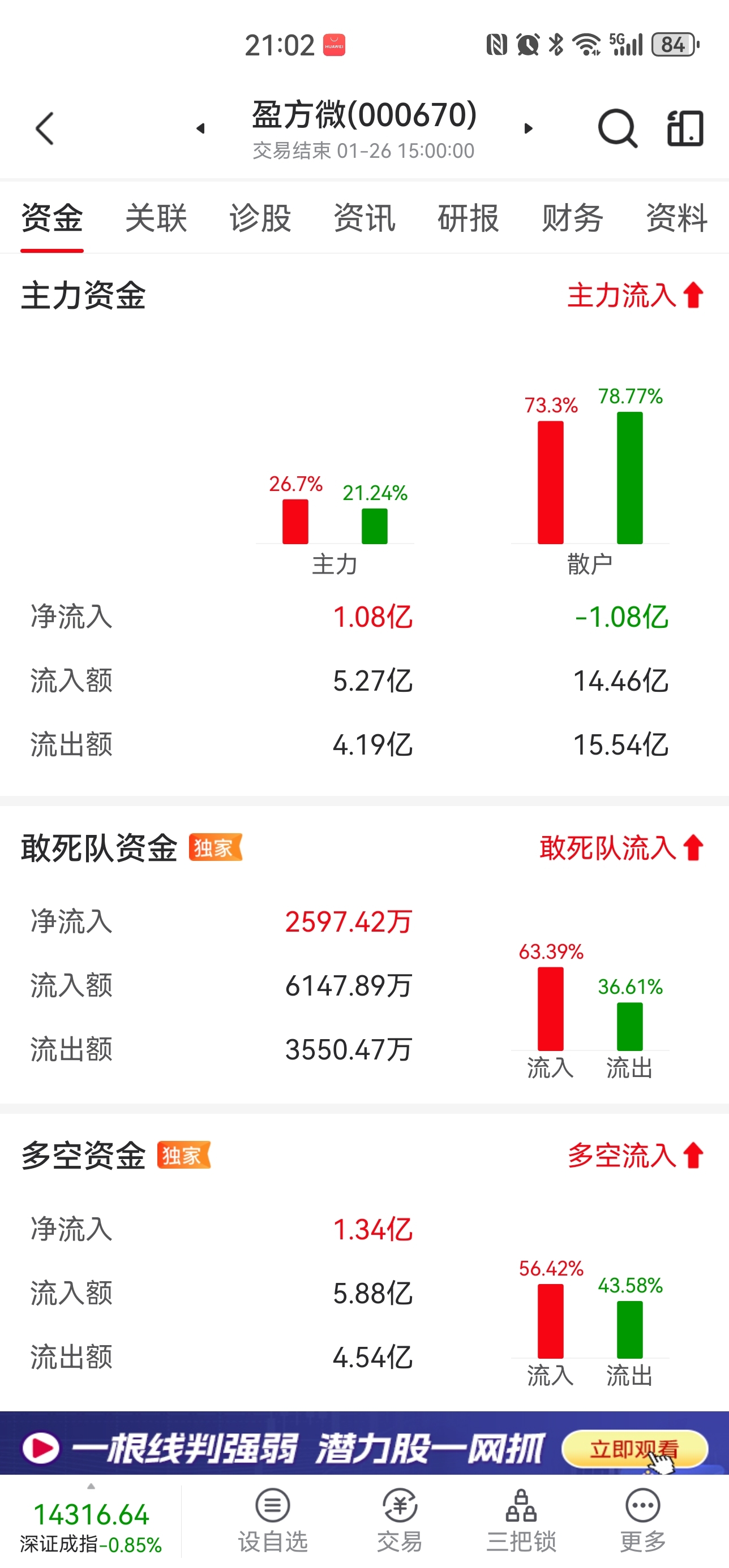 同花顺和东财看的奖金博弈不一样。指南针还提示敢死队资金净流入呢。。