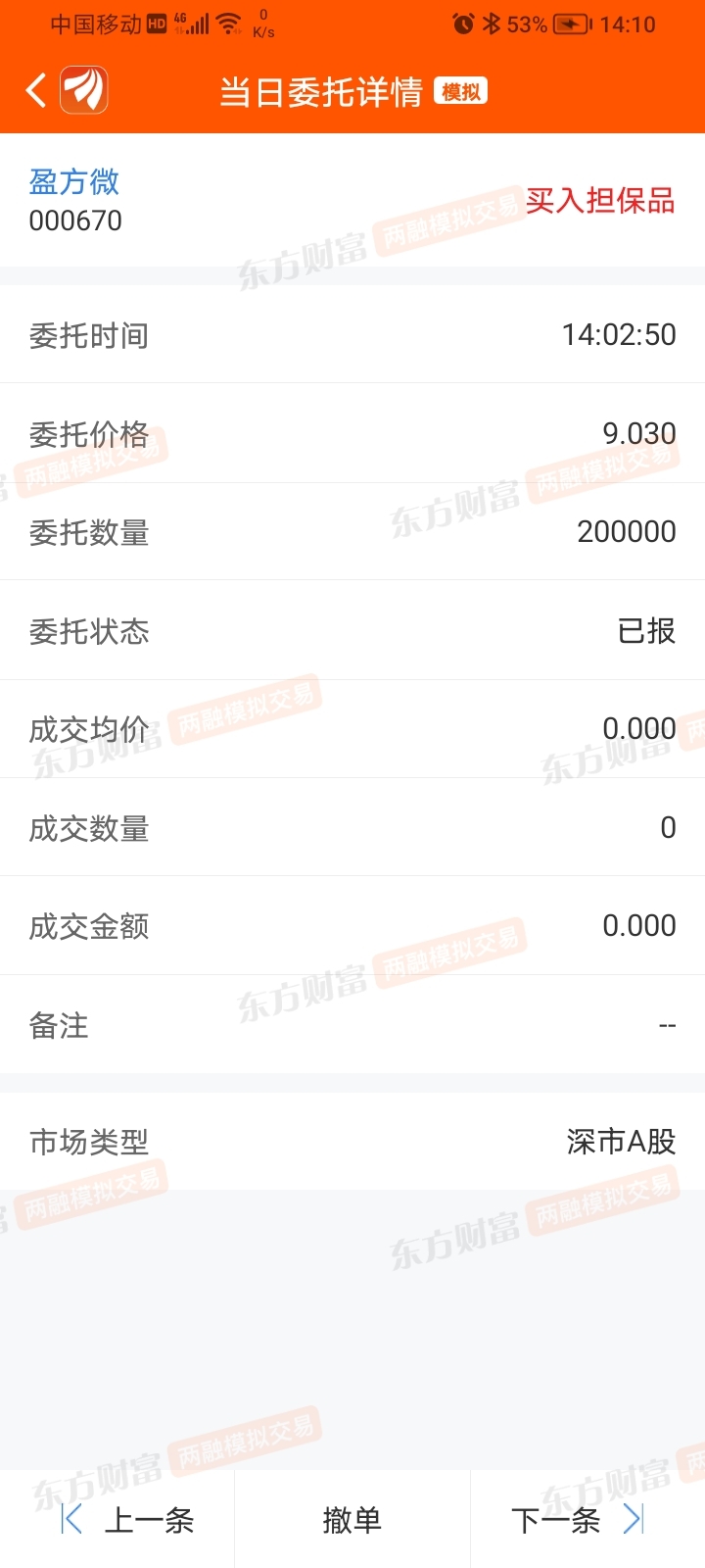 $盈方微(SZ000670)$ 钓了大半天了,就是不成交,原来模拟是不会给你成交的,除非低于调的价格,再给你30分钟,不成交我掉涨停价买