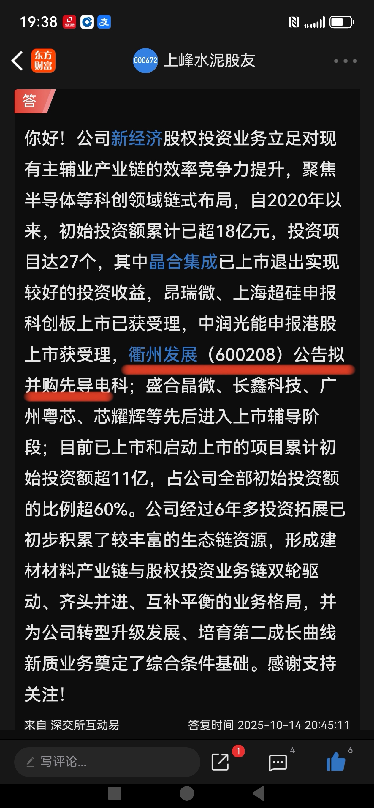 请问一下股友!上峰公司与衢州发展(600208)有什么关系?没看懂?谢谢!!谢谢