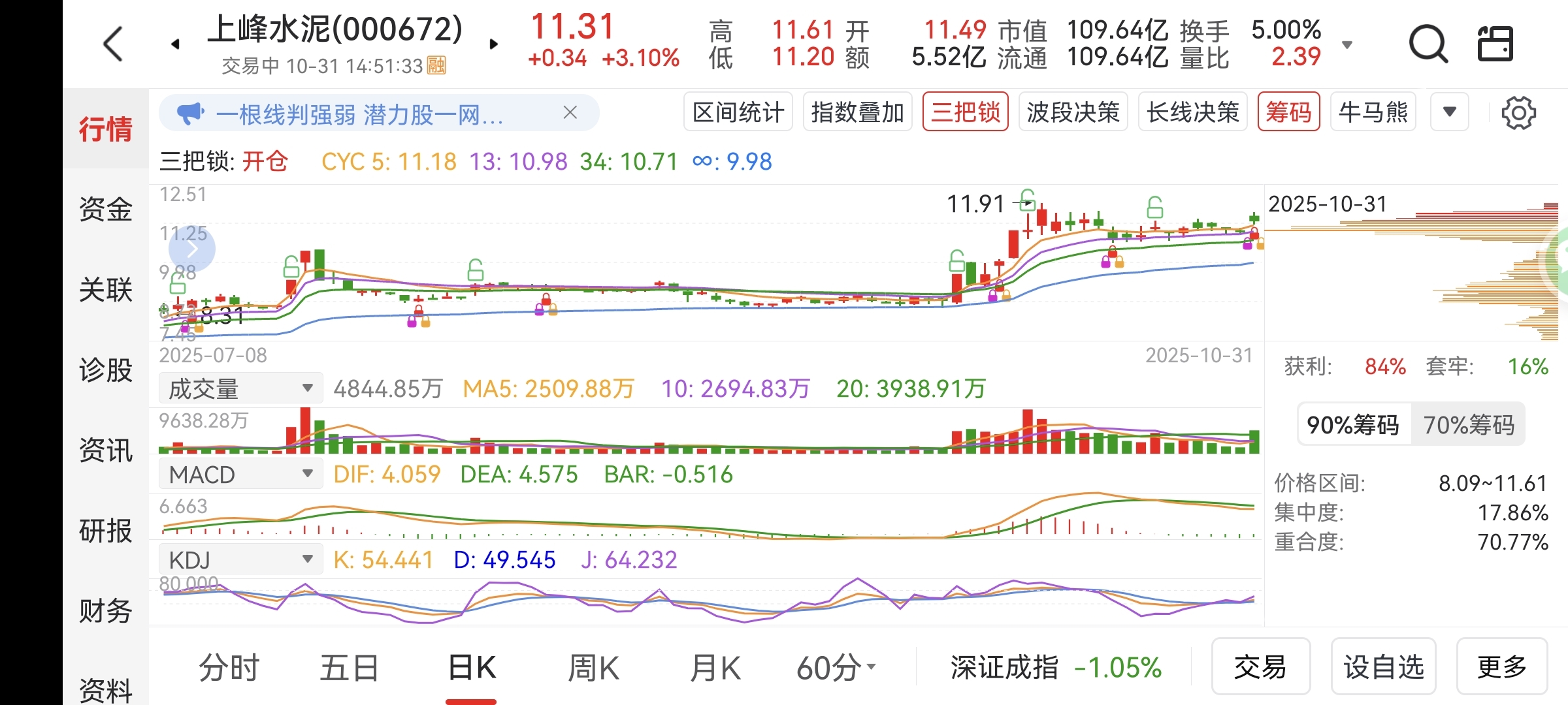 $上峰水泥(SZ000672)$ 看看指南针的三把锁行不行