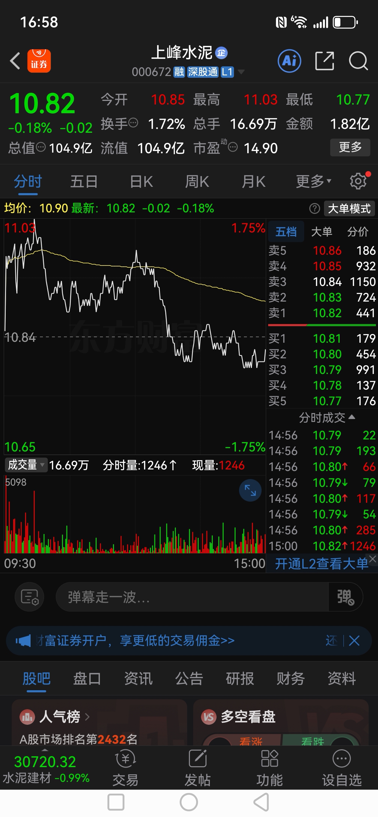 $上峰水泥(SZ000672)$ 在上峰里见证与学会利好出货案例!