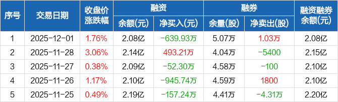 上峰水泥:融资净偿还639.93万元,融资余额2.08亿元(12-01)