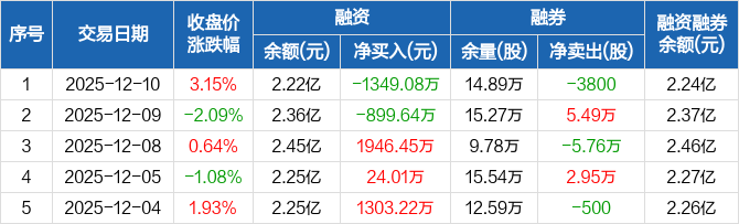 上峰水泥:融资净偿还1349.08万元,融资余额2.22亿元(12-10)