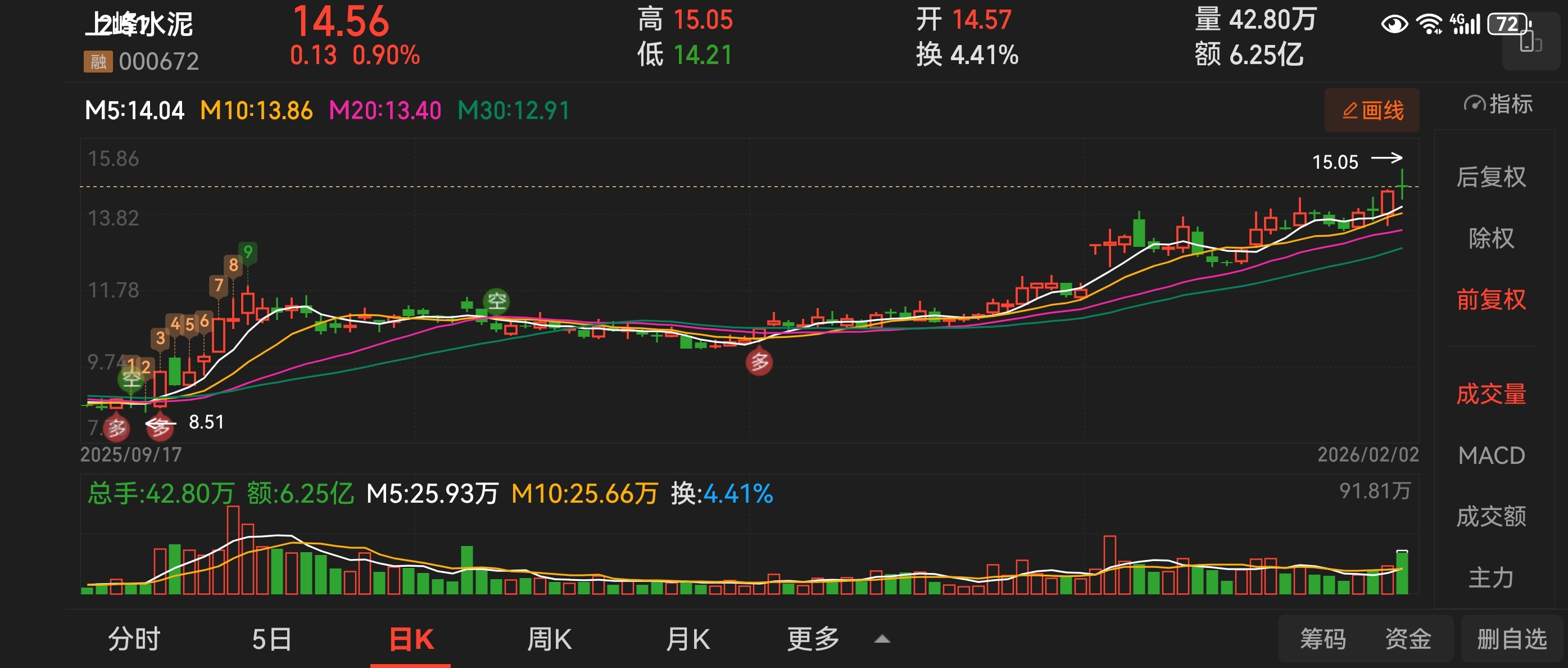 $上峰水泥(SZ000672)$ 尾盘机会,关注