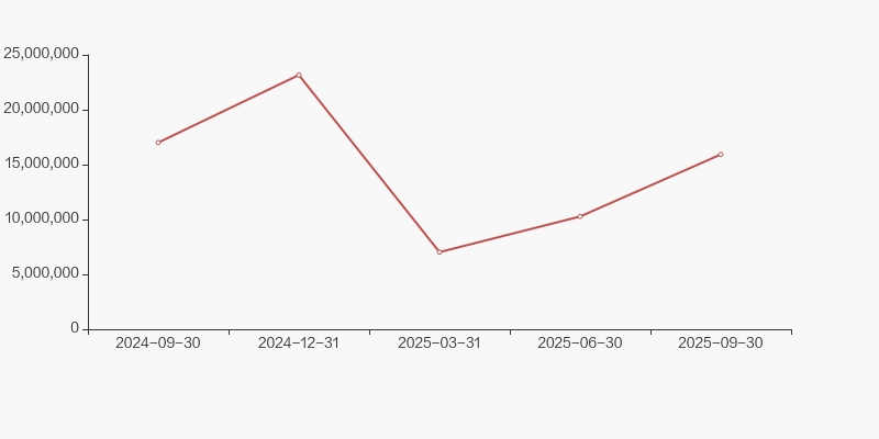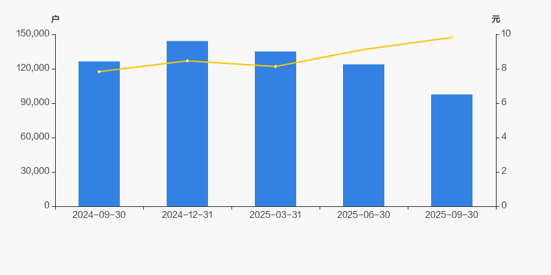 截至2025年9月30日,公司最新流通股本为12.65亿股。户均持有流通股数量由上期的1.02万股上升至1.3万股,户均流通市值12.72万元。