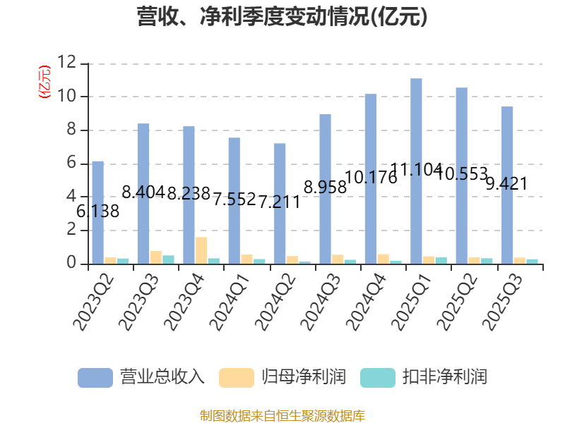 负债重大变化方面,截至2025年三季度末,公司应付票据及应付账款较上年末减少39.87%,占公司总资产比重下降2.37个百分点;短期借款较上年末增加31.46%,占公司总资产比重上升1.42个百分点;应付职工薪酬较上年末减少43.31%,占公司总资产比重下降0.59个百分点;合同负债较上年末增加26.54%,占公司总资产比重上升0.16个百分点。