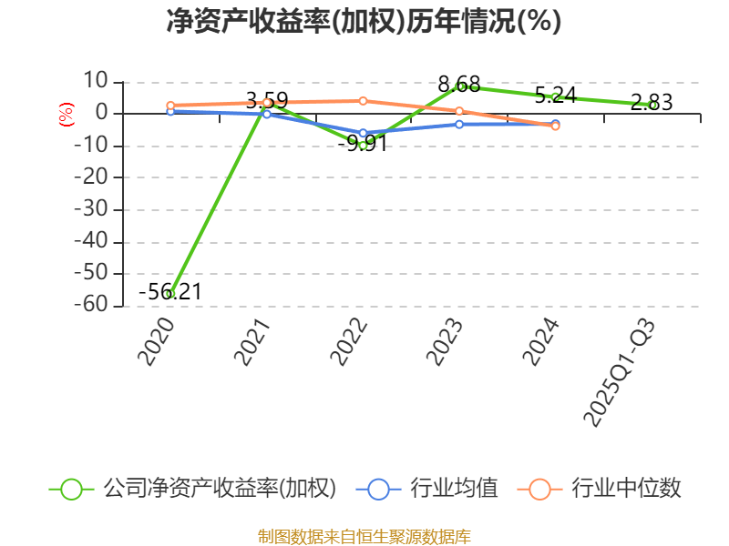 盈利能力方面, 2025年前三季度公司加权平均净资产收益率为2.83%,同比下降1.14个百分点。公司2025年前三季度投入资本回报率为2.76%,较上年同期下降1.68个百分点。