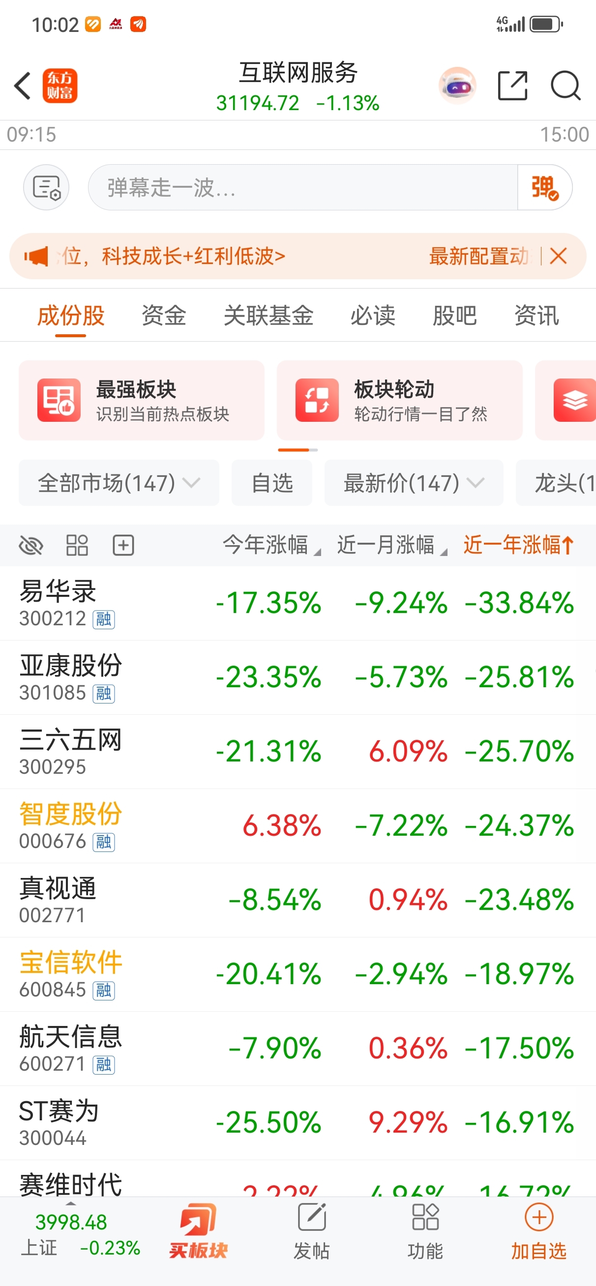 近一年跌幅,已经来到了板块倒数第四了,哎。