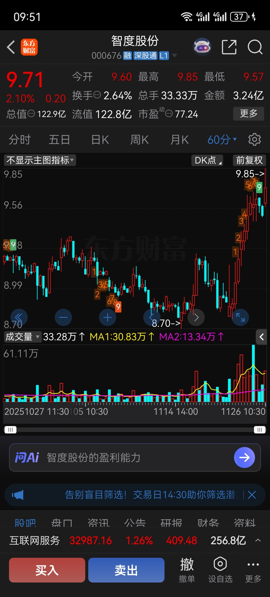 $智度股份(SZ000676)$ 好,第一波先清一次场